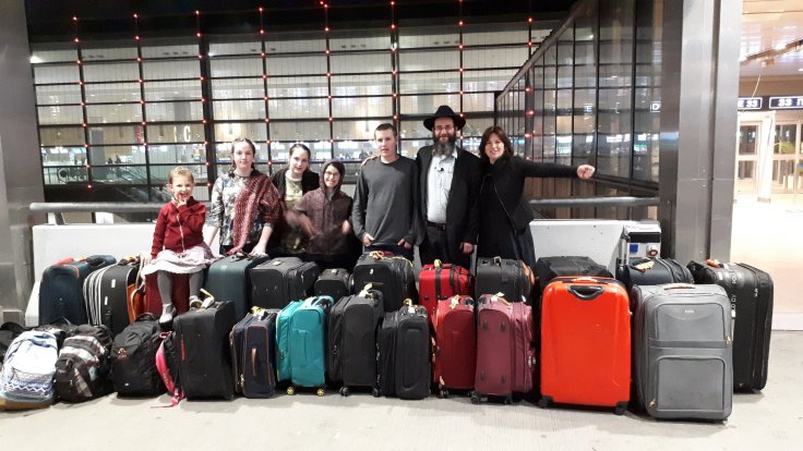 44 ק"ג מצות, 36 ק"ג טחינה, 20 ליטר יין, 14 מזוודות, 7 טרולי, 5 ילדים, 2 הורים, אחד אלקינו שבשמים ובארץ! המסע התחיל…